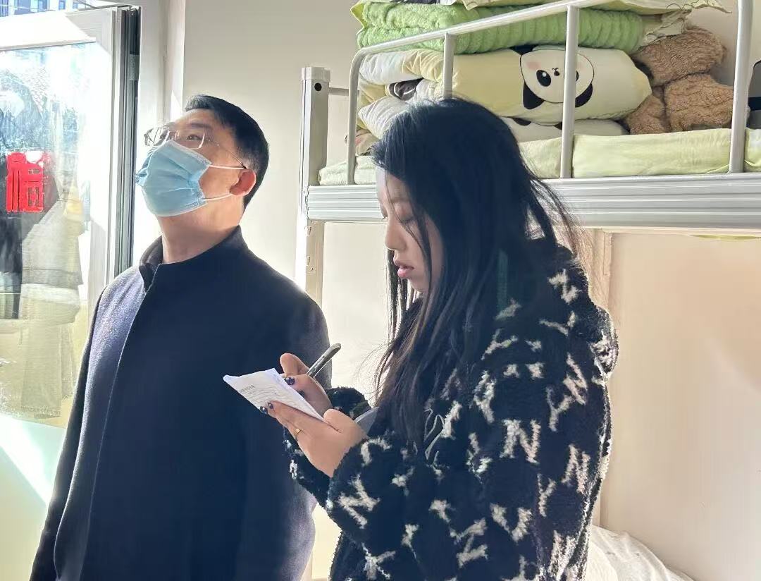 为弘扬优良宿舍文化,筑牢社区安全防线,11月28日,beat365亚洲体育官方网站开展社区安全文明月暨宿舍文化节优秀宿舍评比活动,党总支书记曹钊庆、团总支副书记纪俞舟、辅导员老师、25级班主任共同走进学生宿舍,开展实地走访与考评。