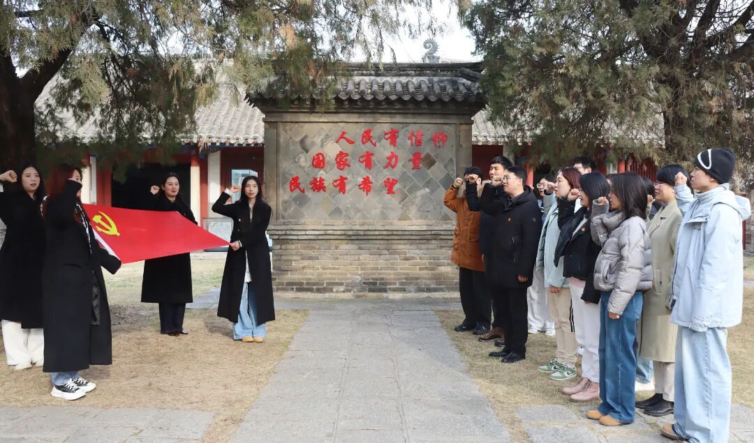活动尾声,全体师生党员在党旗前整齐列队、举起右拳,庄严重温入党誓词。“我志愿加入中国共产党,拥护党的纲领,遵守党的章程……”铿锵有力的誓言在雷神庙内久久回荡,既是对革命先烈的深切缅怀,更彰显了新时代高校师生党员传承红色薪火、践行育人初心的坚定信念。教师党员们纷纷表示,此次实地研学让红色精神从书本走向现实,今后将把雷神庙的战斗精神融入课堂教学与师德建设,以更坚定的理想信念履行立德树人根本任务。