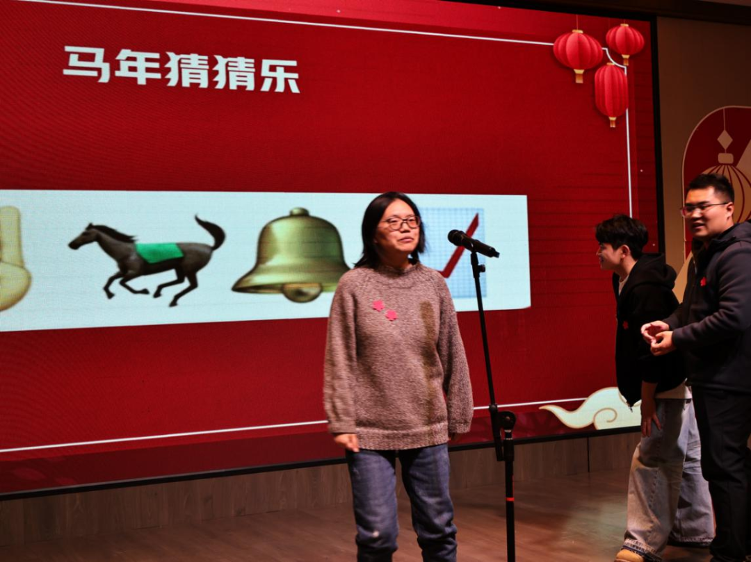 互动环节同样趣味十足。“马年猜猜乐”游戏中,老师们通过emoji竞猜马年成语,敏捷的思维与默契的配合引得现场笑声不断;“颜色指令大挑战”考验反应力与专注力,老师们的精彩表现让现场气氛持续高涨;活动特设“终极锦囊”惊喜环节,苏校长亲自登台随机抽取,妙趣横生的互动接连上演,现场暖意涌动,欢乐氛围拉满。文2521-1班沈贻宇同学献上精彩绝伦的川剧变脸表演,瞬间点燃全场氛围。