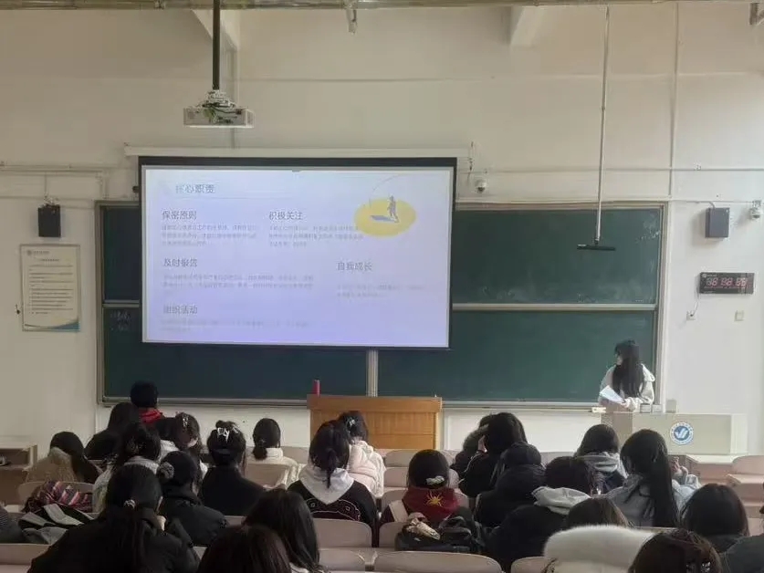 培训围绕心理委员的角色定位与工作边界展开,明确其作为师生沟通桥梁、班级暖心伙伴的重要职责,强调坚守助人自助、真诚陪伴、及时上报的工作准则。同时,详细讲解保密原则、沟通技巧与心理状态识别方法,介绍校园心理咨询、危机转介等正规求助渠道,帮助心理委员提升专业能力。参训同学认真聆听、积极思考,展现良好学习态度。