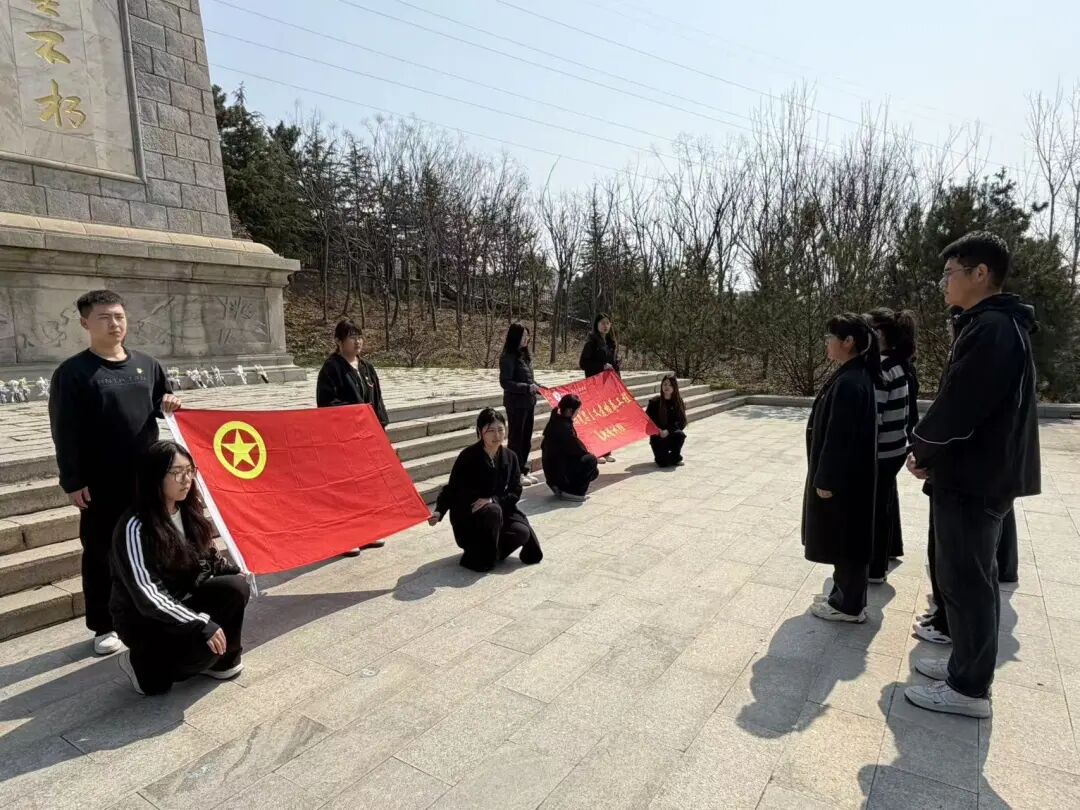 活动现场庄严肃穆,全体人员列队肃立,奏唱国歌、集体默哀,向革命先烈致以哀悼和敬意。随后,大家依次向烈士纪念碑敬献鲜花、瞻仰纪念碑,寄托追思。活动中,师生党员重温入党誓词,誓言铿锵,坚定初心使命;青马学员重温入团誓词,展现青年学子跟党走的决心。师生党员、入党积极分子、青马学员代表分别诵读致先烈书信,表达对英烈的缅怀,以及传承红色精神、勇担时代使命的信念。